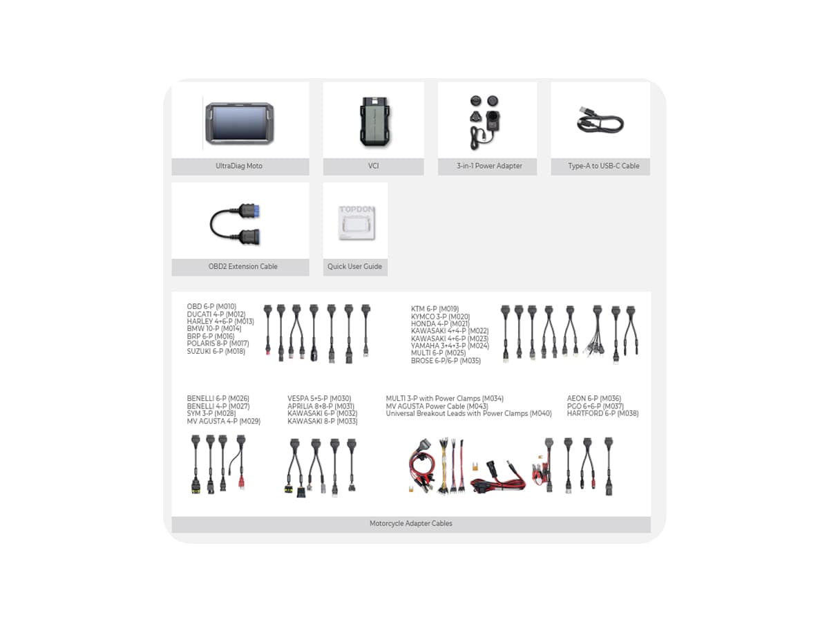 Das Topdon UltraDiag Moto wurde speziell für Motorradspezialisten und Werkstätten entwickelt, die tiefgreifende Diagnosemöglichkeiten benötigen. Das Gerät unterstützt die vollständige Systemdiagnose für mehr als 80 Motorradmarken, darunter bekannte Marken wie Honda, BMW, Harley und viele andere.